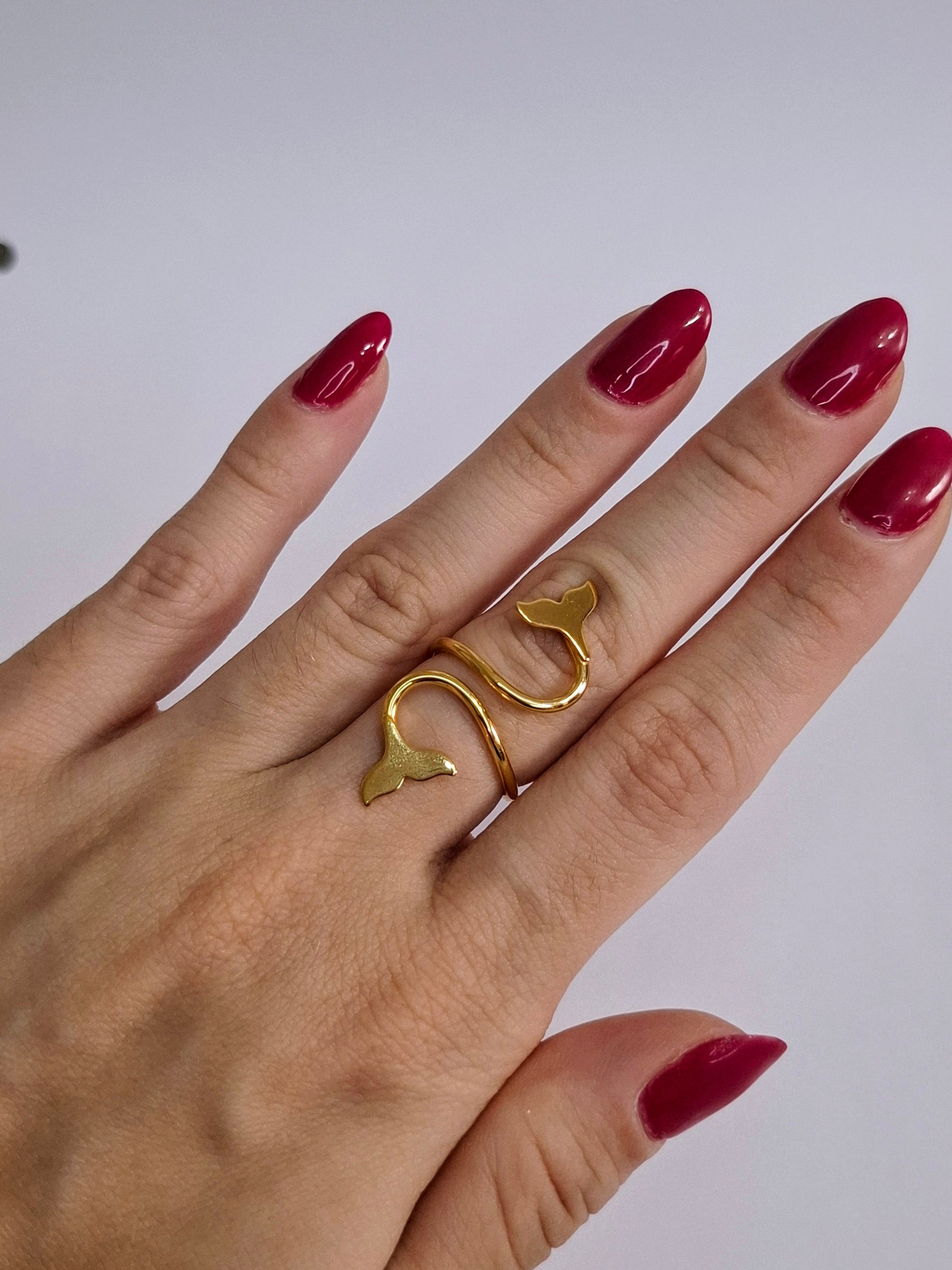 Este anel regulável em formato de cauda de sereia, banhado a ouro, combina delicadeza e versatilidade. Seu design exclusivo permite ajuste perfeito, garantindo conforto e estilo para qualquer ocasião. Ideal para quem busca uma peça sofisticada que valoriza a beleza com um toque de originalidade.