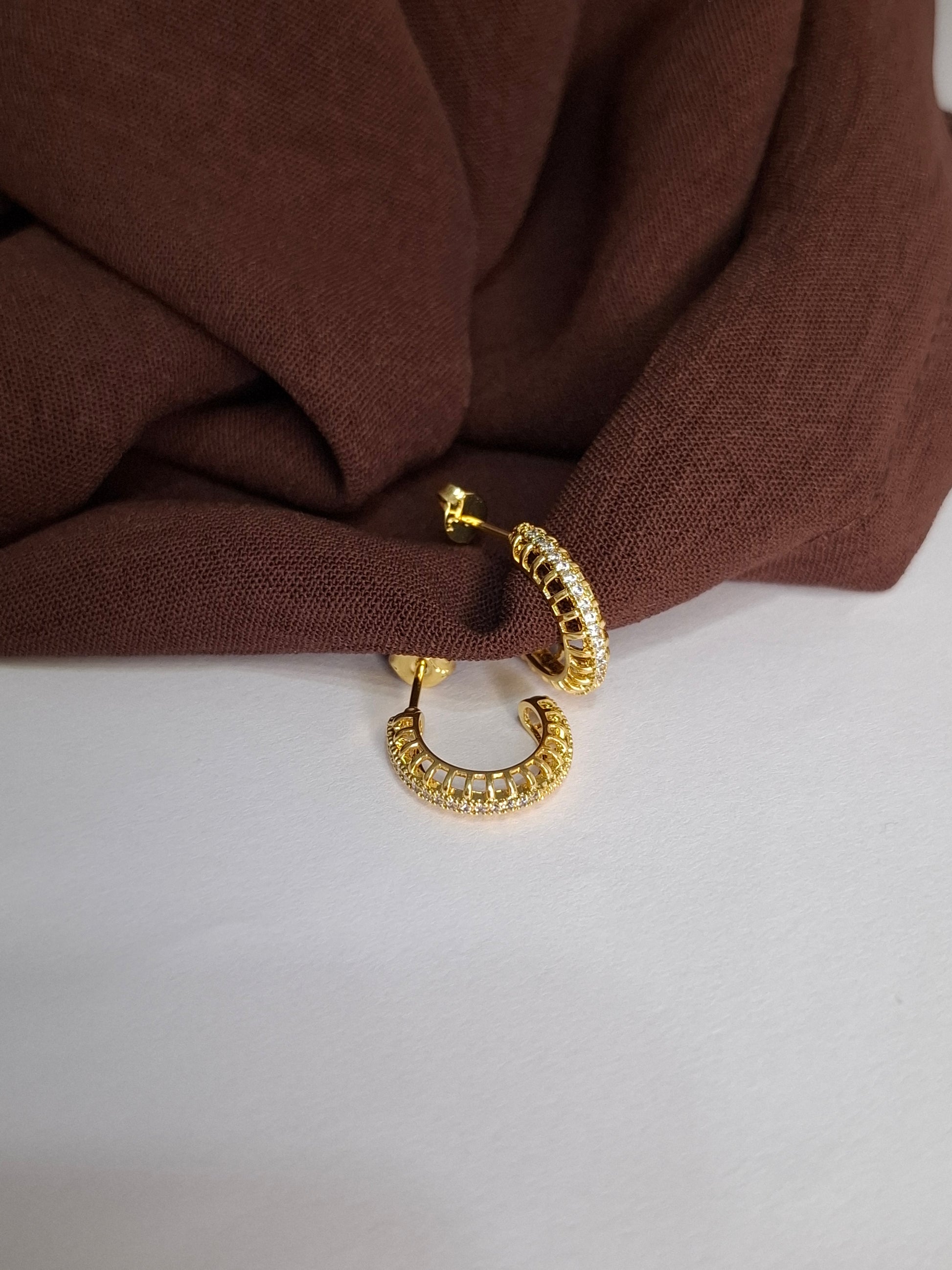 Brinco Argola Fios com Fileira Cravejada G exibe estrutura circular ampliada com fios metálicos intrincadamente entrelaçados e linha generosa de pedras cravejadas. Esta versão grande proporciona máximo impacto visual com equilíbrio entre volume e refinamento. A dimensão acentuada cria movimento expressivo enquanto a cravação precisa adiciona luminosidade substancial, resultando em peça statement que confere sofisticação imediata a qualquer composição.