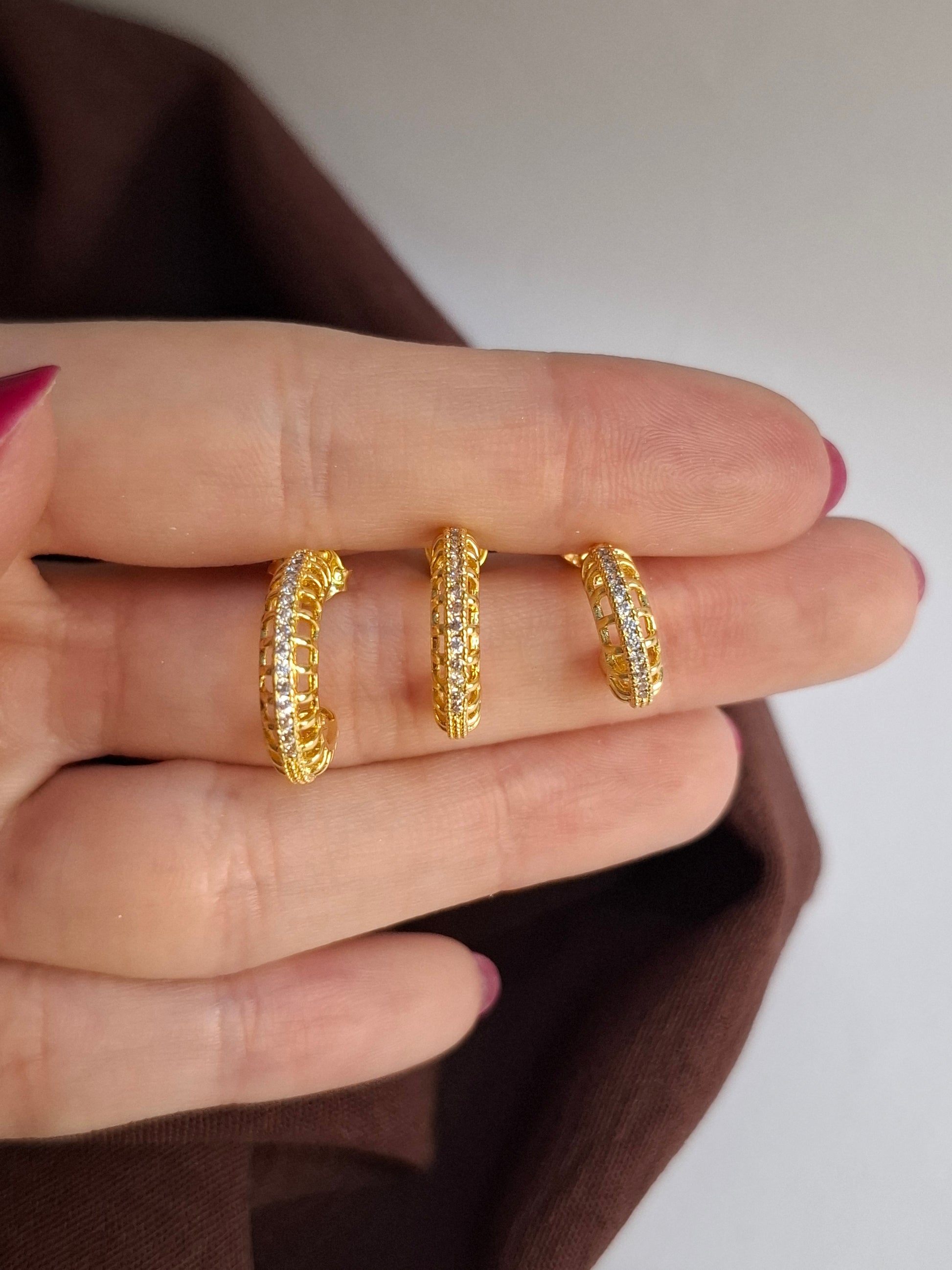 Brinco Argola Fios com Fileira Cravejada P combina delicados fios metálicos com uma linha precisa de pedras cravejadas. Esta versão pequena oferece sofisticação discreta com equilíbrio entre textura e brilho. A estrutura circular proporciona movimento sutil enquanto a fileira cravejada adiciona luminosidade refinada, criando uma peça versátil para uso cotidiano com elegância contemporânea.