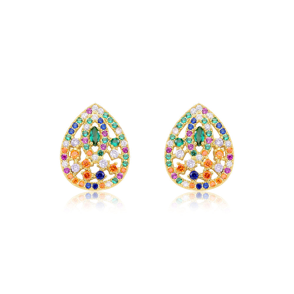 Este brinco em formato de gota apresenta uma delicada cravação colorida que realça a sofisticação da peça. Ideal para quem busca um acessório versátil, ele combina brilho e cor, valorizando qualquer look com elegância e modernidade. Perfeito para ocasiões especiais ou para adicionar um toque refinado ao dia a dia.