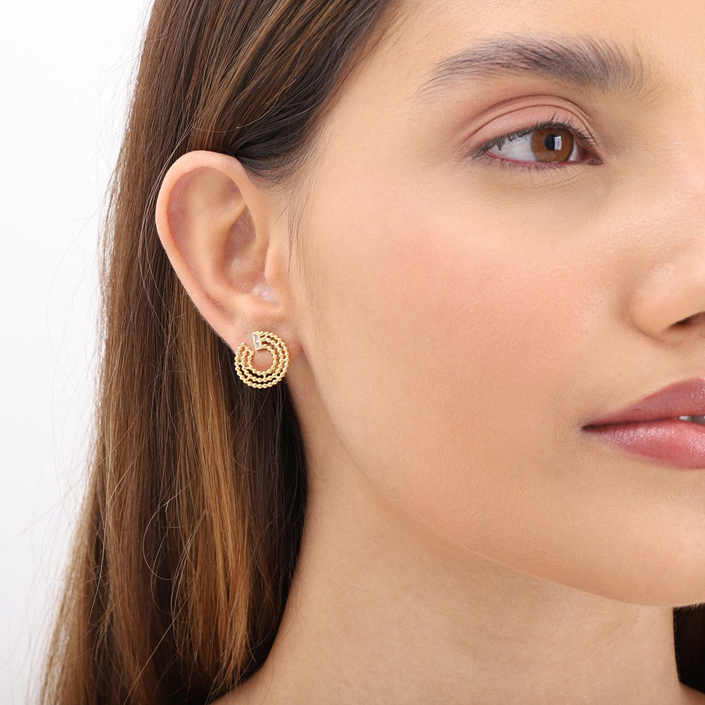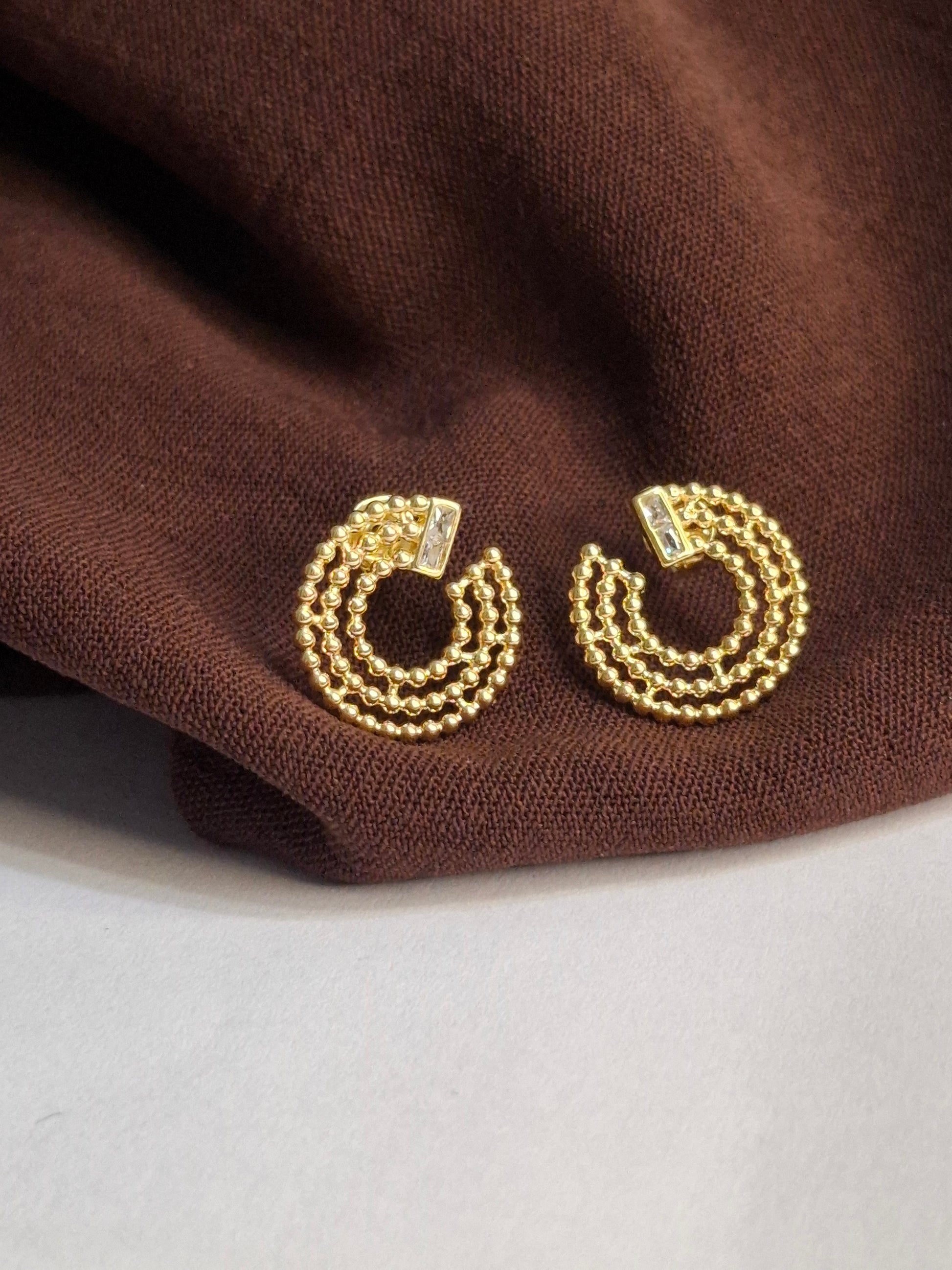 Brinco Meio Círculo Trabalhado apresenta design semicircular com superfície meticulosamente texturizada. A estrutura geométrica contemporânea é enriquecida por detalhes artesanais que criam jogo de luz e sombra sofisticado. Elaborado com técnica refinada, este brinco oferece equilíbrio entre presença visual e leveza, proporcionando elegância arquitetônica que complementa tanto looks minimalistas quanto composições mais elaboradas.