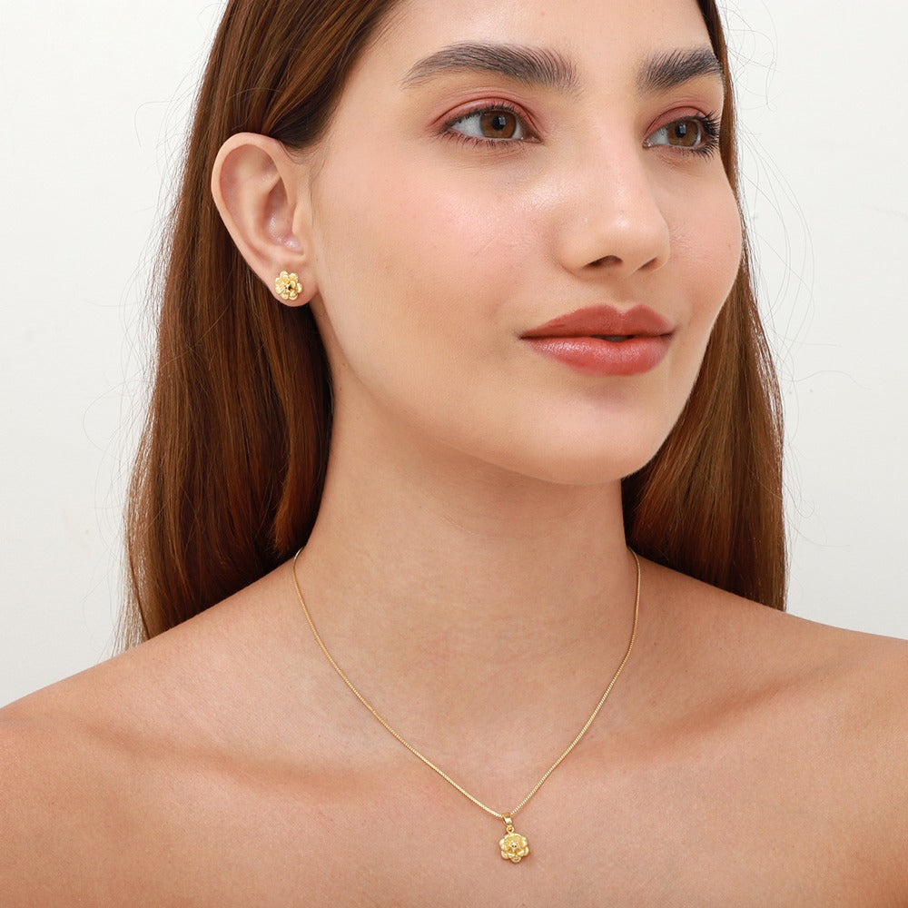 Elegante conjunto flor com detalhes cravejados, apresentando acabamento refinado e corrente de 45 cm. A combinação perfeita de delicadeza e sofisticação, ideal para complementar looks casuais ou formais. Peça versátil que valoriza o colo com seu design exclusivo.